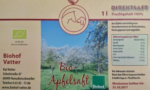Unser Apfelsaft wird in der Bannmühle in Odernheim frisch gekeltert und abgefüllt, käuflich erwerben können Sie ihn entweder direkt bei uns zu Hause oder auch im Hofladen des Biolandhofes Familie Nau in Hütschenhausen.