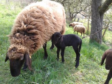 Wir züchten mit großer Freude seit 2013 Braune Bergschafe, haben mittlerweile einen Herdbuchbestand von 14 Mutterschafen und 2 gekörten Zuchtböcken. Außerdem befinden sich seit 2014 fünf gescheckte Bergschafe (Mutterschafe) in unserem Besitz.